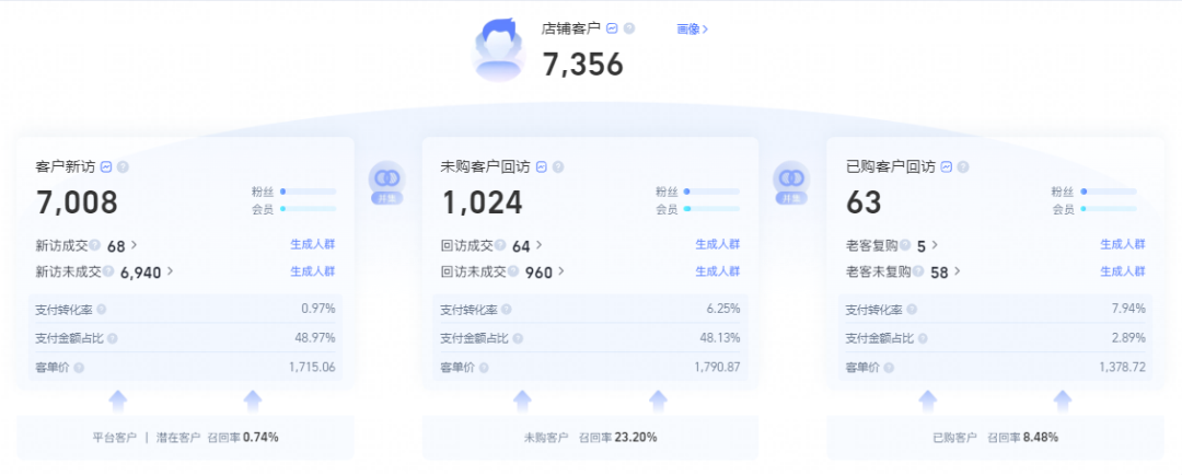 3.店鋪核心詞和轉化人群確定之后,看整體店鋪流量結構,流量結構轉化率對比,免費流量轉化高就重點規劃周期增加免費渠道流量,優化店鋪人群,階段轉化穩定提高。