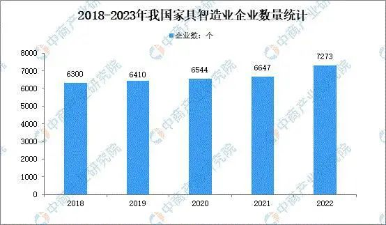 數據顯示,2022年家具制造業企業數量達7273個,同比增長9.42%,較去年增長了626家。