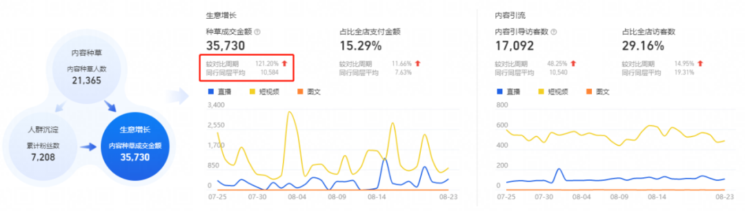 “通過內容營銷可以合理地幫助店鋪打開內容渠道流量,提升店鋪免費流量的獲取能力降低經營成本,且提高品牌知名度和曝光度,讓消費者跟品牌強互動,拉動內容流量持續增長。我們的店鋪初始內容流量幾乎為零,通過該方式高效發布短視頻,來帶動客戶從認知到種草,從而提升單品銷量增長。”光灝向我們介紹。