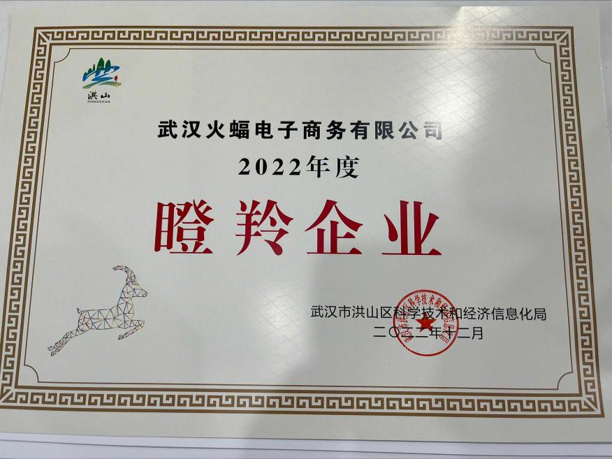 ▲火蝠電商「瞪羚企業(yè)」認證證書