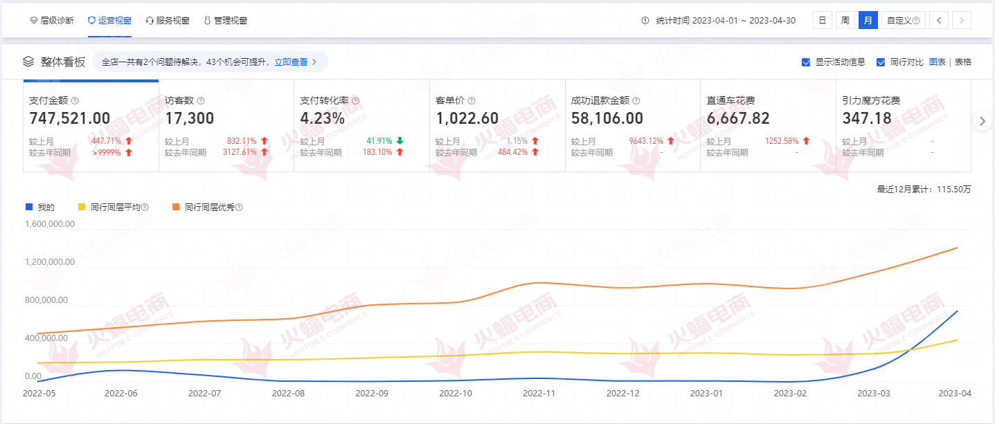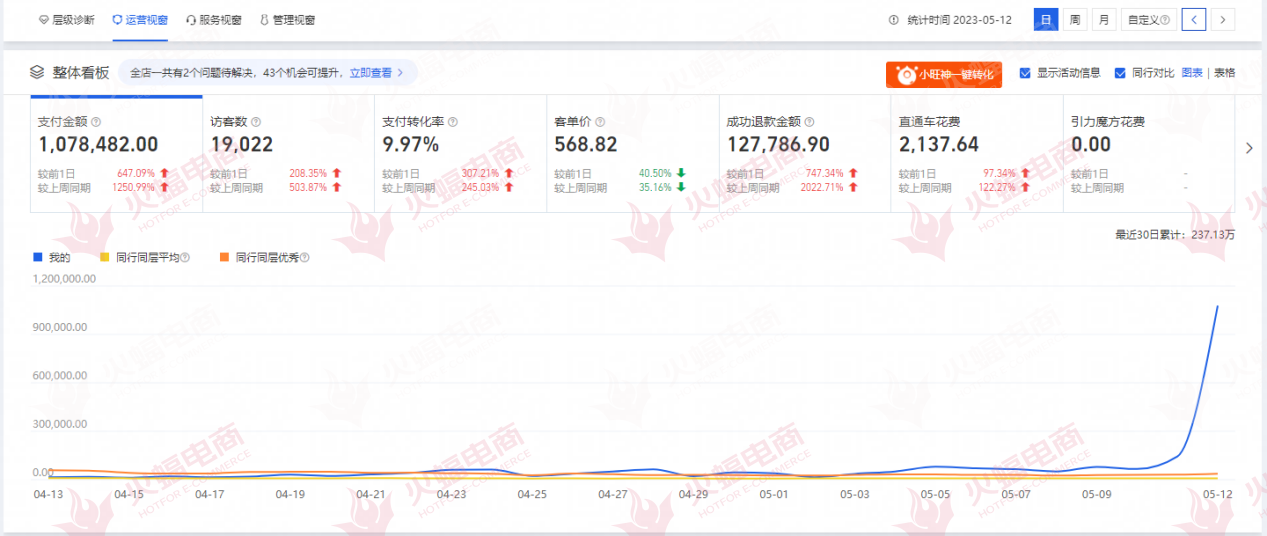 據了解,武漢火蝠電子商務有限公司(以下簡稱“火蝠電商”)就是周生(化名)選擇的代運營合作伙伴,即本次618店鋪增量的幕后推手。碰巧的是,在6月初,該企業(yè)還憑借著對美妝賽道的理解和創(chuàng)新能力,一舉斬獲2023CIBE美博會【顏值經濟品牌運營官】重量級認證。近9年的電商服務經驗,以店鋪代運營、爆品打造等服務見長的火蝠電商,正在成為越來越多品牌主的選擇。而其強大的“數字營銷”能力,是周生(化名)選擇合作的理由之一,也是店鋪增長的關鍵。