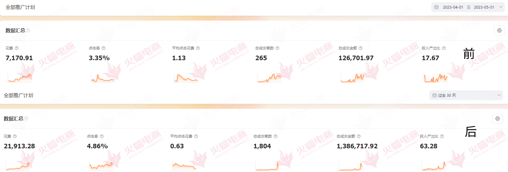 ▲店鋪投產比前后變化。圖/火蝠電商