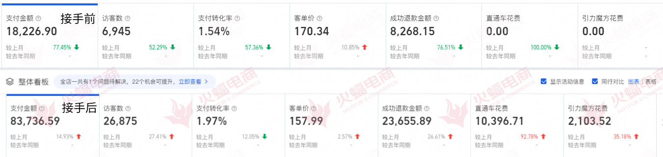 △接手店鋪前后銷售額變化。圖/火蝠電商