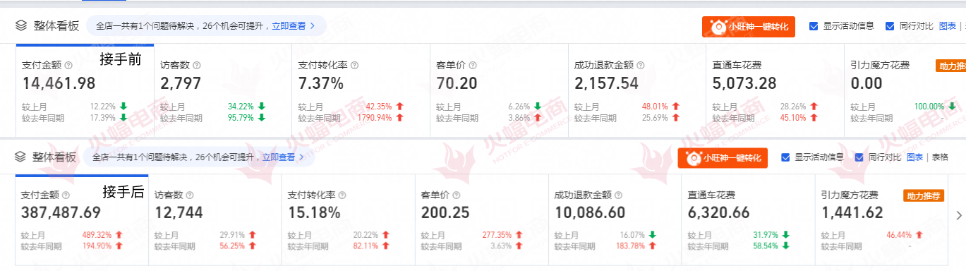 ▲接手前后店鋪核心數據對比。